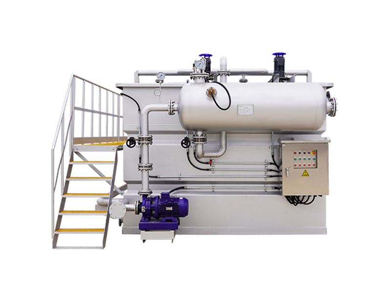 QK-DAF气浮澄清器是一种新型污水气浮净化设备,能有效分离污水中的悬浮物、重质颗粒。具有动力消耗低、处理效率高、易维护、安装简便无土建等优点,是目前高效的气浮类设备之一。待处理污水,经污水泵提升至气浮机进水仓内,和溶气泵的溶汽水混合后,在释放区域内形成大量微细气泡,附着在悬浮物颗粒上,使絮状物上浮到水面,由刮渣板刮至排渣口后排出;重质颗粒物经斜板沉淀区,沉降到设备底部的集泥斗,通过管道外排至污泥池中,进行后续处理;澄清后的净化水由设备中心管排出机外。